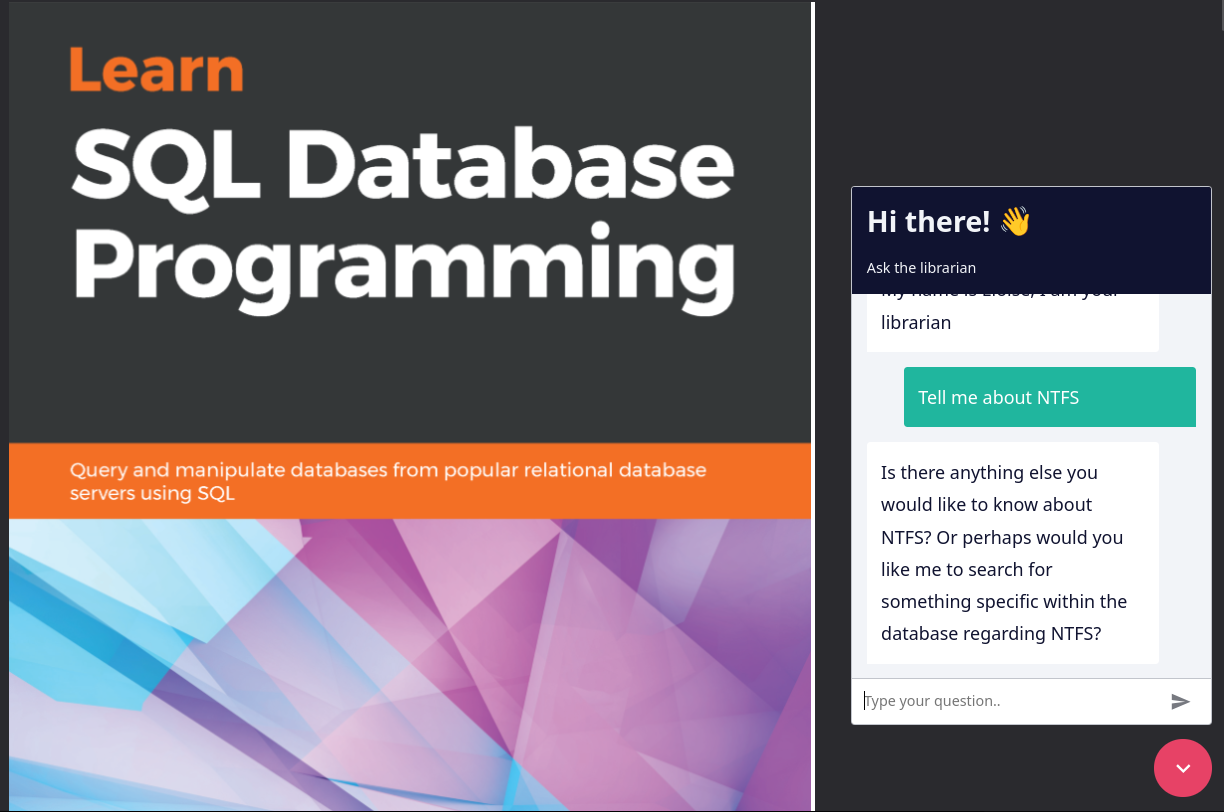 As someone that is not very fond of the AI-hype, I still play around with it to look for some actual good use cases. The use case I am picturing is a simple "chat bot" that would give me decent answers, BUT (and this is important) it should source it's information from books I own. And reference what book it found the answers in.