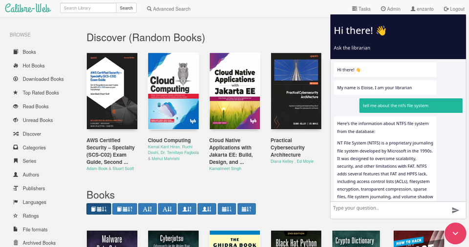 This chat bot should also be integrated in my library, a Calibre web instance I am self hosting. And ideally, when i open a book to read in the browser, the chat should send the book ID from the URL to the N8N agent. So that the N8N agent can use that for reference when it is searching in the vector database.